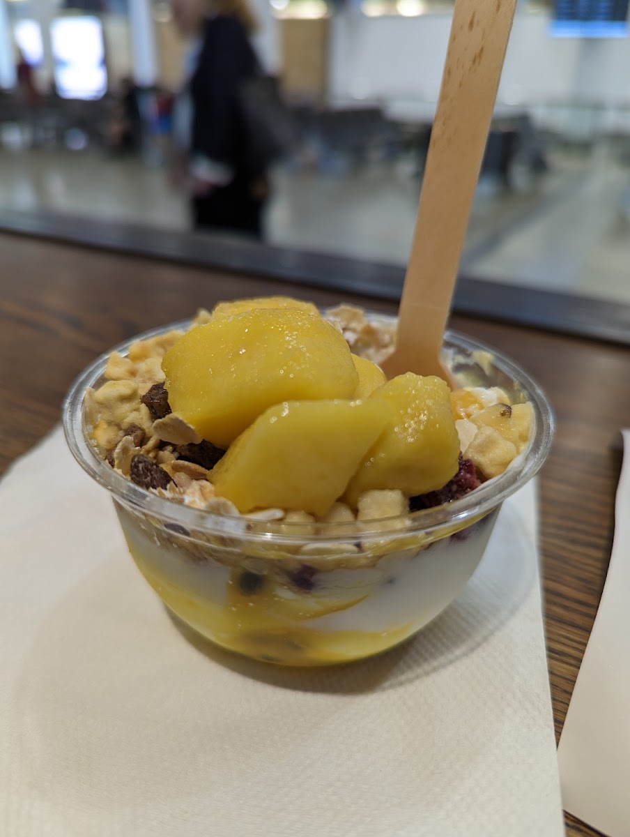 The menu caters well to those seeking simple yet thoughtful options. The mango yogurt and granola offers a fresh alternative to the usual café fare, while the salted caramel gluten-free ball provides a sweet bite for those with dietary considerations, even if gluten-free options are somewhat limited. Savory choices like the spinach and ricotta roll add variety for light meals or snacks.